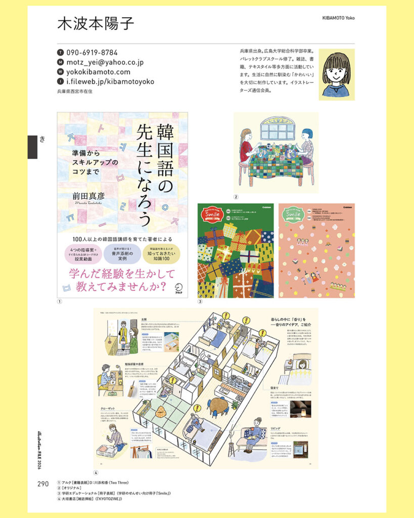 『illustraion FILE2026』(玄光社)掲載のお知らせ 2026年4月1日 最終更新日時 : 2026年4月1日 kibamoto_yoko 今年も掲載していただきました。上巻p290です。 掲載を快諾していただいたクライアント様、ありがとうございました。 イラストレーションファイルをきっかけに新たなお仕事につながれば嬉しく思います。 どうぞよろしくお願いいたします。 \ 最新情報をチェック / FacebookXBlueskyHatenaCopy